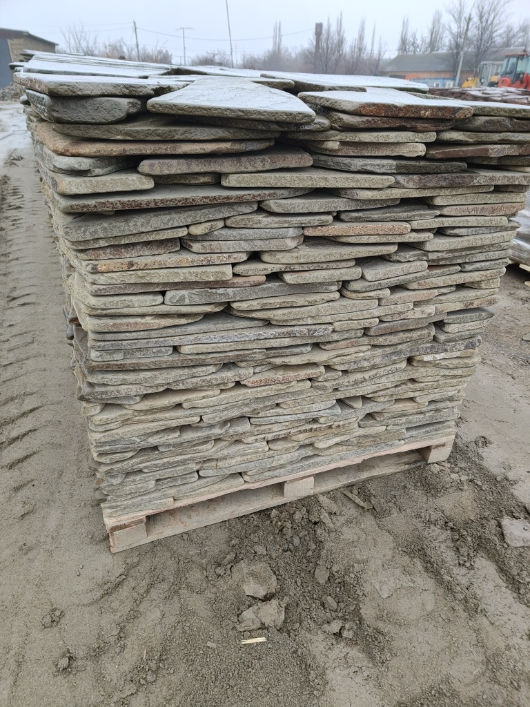 Песчаник серо-зелёный галтованный для облицовки цоколя, отмостки 20-30 мм