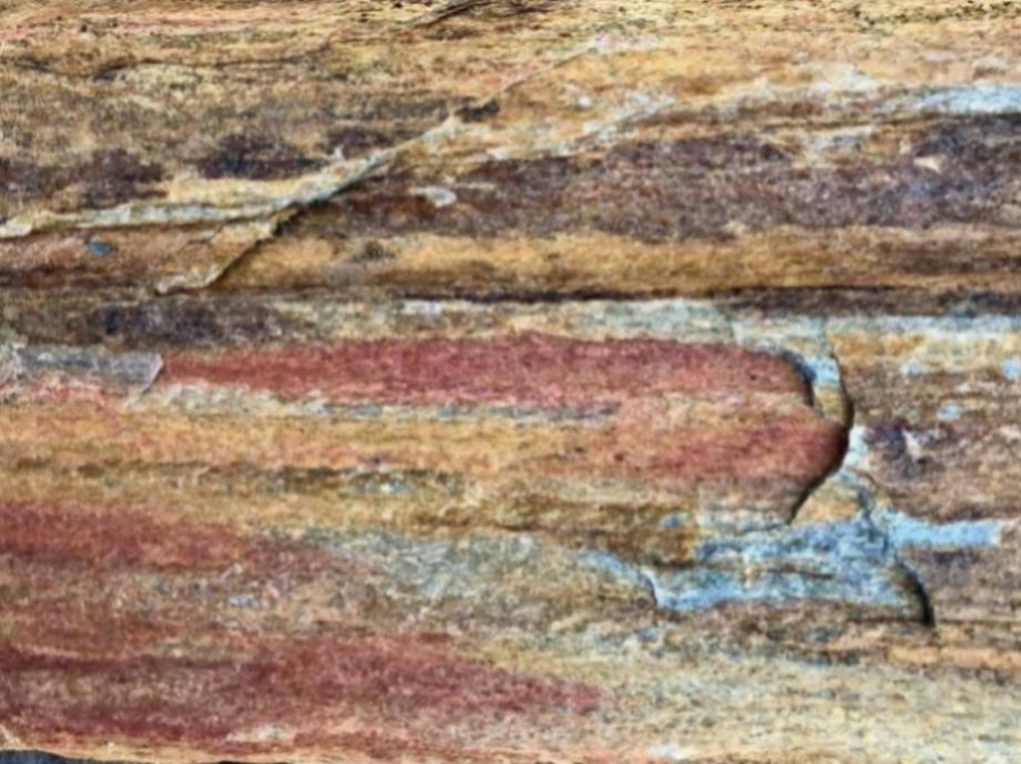 Поверхность плиток этого натурального камня напоминает рельеф деревянной коры, поэтому они часто сравниваются с древесиной. Этот удивительный камень содержит в основном кварц, благодаря чему он прочный и устойчив к природным воздействиям – не выцветает на солнце, не рассыпается и не размокает от дождя. Слюда в его составе добавляет неповторимую красоту – плитняк сияет и искрится при освещении солнцем или искусственным светом.